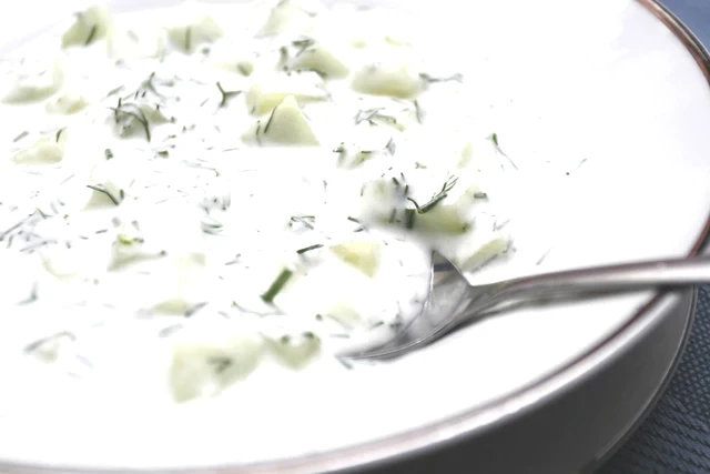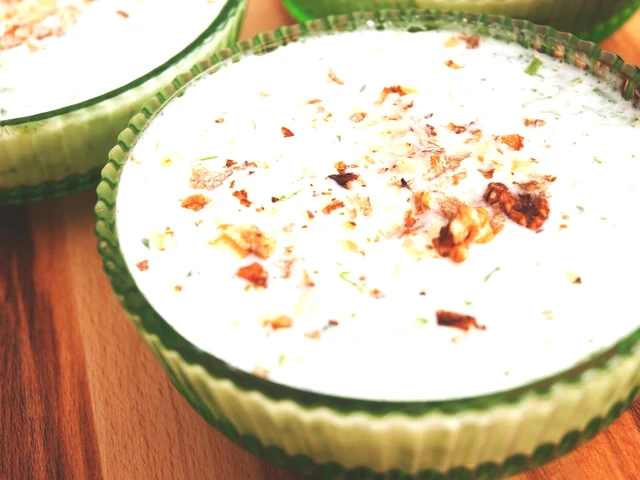 Soğuyan kabakların üzerine sarımsaklı yoğurdu, ince kıyılmış dereotunu ve ceviz içini ekleyin. Malzemeleri nazikçe harmanlayarak soğuk servis yapın.